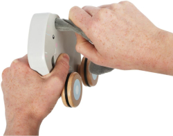 Колела: Дървени с гумено покритие, осигуряващи плавно движение и защита на пода.