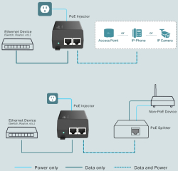 PoE Инжектор TP-Link POE160S, IEEE 802.3af-at, 2x GbE RJ45 ports, до 100м.