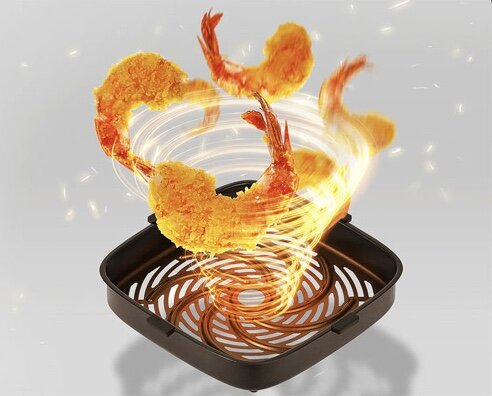 Кръговият въздушен поток доставя топлина директно в сърцевината на храната, запечатвайки вътрешната влага и извличайки мазнините, което води до хрупкава текстура и нежна вътрешност без излишно масло за по-здравословно хранене.