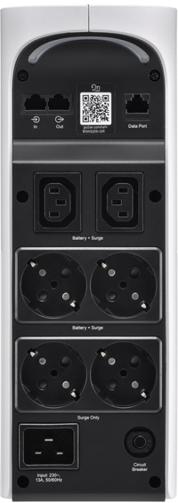 Моделът комбинира висока мощност 2200 VA / 1320 W, защита от пренапрежение (вкл. за мрежова линия RJ-45) и удобен мониторинг чрез LCD дисплей и LED индикации. APC Back-UPS Pro 2200VA-1320W Tower 230V 4x Schuko and 2x IEC C13 outputs RGB lighting pure sine wave Arctic white добавя и стил към сетъпа с RGB осветление и вертикален (tower) дизайн.