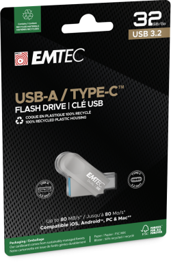 Флаш памет EMTEC USB 3.2 Type-C Dual D280 32 GB, двустранна