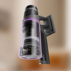 С мултициклонно събиране на прах и HEPA филтър, моделът помага за по-чист въздух и по-добро улавяне на фини частици – практично решение за ежедневна хигиена. Високата сила на засмукване подпомага събирането на замърсявания от различни повърхности, а конструкцията тип прахосмукачка без торба улеснява поддръжката.
