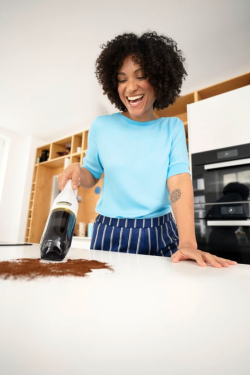 - Компактният и лек дизайн означава, че тази прахосмукачка е лесна за работа и съхранение.