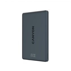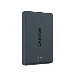 CANYON magnetic OnPower 500, PD20W, 5000mAh, Алуминий, MagSafe, черен е ултратънка магнитна външна батерия (power bank), създадена за удобно ежедневие и сигурно захранване в движение. Комбинира компактен дизайн с MagSafe безжично зареждане и Power Delivery до 20 W.