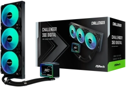 Asrock Challenger 360 Digital е високопроизводителна течна охладителна система за процесор (AIO) с 360 мм радиатор, ARGB подсветка и LCD дисплей за модерен завършек на геймърски и професионални конфигурации.