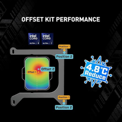 Водният блок е с размери 71.23 x 69.47 x 75.05 мм, а помпата работи със скорост 3400 RPM и ниво на шум 20 dB, с очакван живот 50 000 ч. Радиаторът е с размери 277 x 119.6 x 27 мм и може да се монтира с регулируем монтажен комплект. Горният капак е сменяем, а предварително инсталираните вентилатори и Daisy Chain свързването улесняват настройката. Гаранцията е 36 месеца.