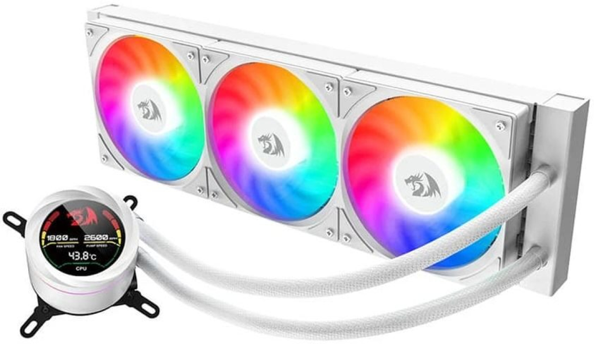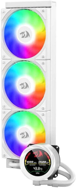 Водно охлаждане за процесор Redragon CCW-1017 с aRGB осветление и дисплей - бял