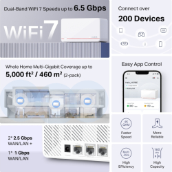 Безжична Wi-fi 7 Mesh система Mercusys Halo H37BE(2-pack) BE6500