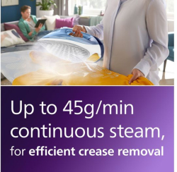 С постоянна пара до 45 g/min и парен удар до 180 g/min, PHILIPS GC4532-20 Iron Philips GC4532-20 Azur Performer blue помага да изгладите дори по-упорити гънки с по-малко усилие. Плочата SteamGlide осигурява гладко плъзгане върху различни тъкани, а функцията за пръскане подпомага овлажняването при нужда.
