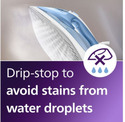 За по-удобна поддръжка е налична система против котлен камък Quick Calc Release, а Anti-Drip системата намалява риска от капки вода върху дрехите. Моделът е подходящ избор, ако търсите надеждна парна ютия Philips с висока мощност и практични функции за ежедневна употреба.