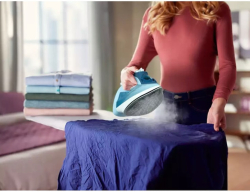 Philips Steam iron Series 6000 40g-min 220g steam boost Ceramic soleplate 2600 е мощна парна ютия за ежедневна домашна употреба, създадена за бързо и равномерно гладене. Комбинацията от висока мощност и керамична гладеща плоча улеснява обработката на различни тъкани.