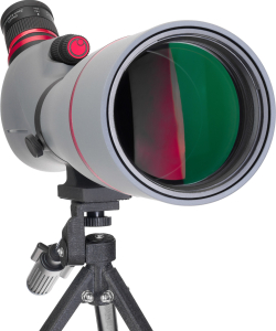 Зрителната тръба е изработена от висококачествено стъкло BK-7 с цялостно многослойно покритие на оптиката, която предоставя ярко и ясно изображение дори привечер или на зазоряване. Обективът с променливо увеличение Ви позволява плавно да променяте увеличението от 20x до 60x. Това е особено полезно, когато условията се променят бързо и е необходимо бързо да коригирате наблюдението. Наклоненият под 45 градуса окуляр Ви позволява да наблюдавате обекти над нивото на очите, като същевременно поддържате естествена, удобна стойка, която намалява напрежението върху врата.